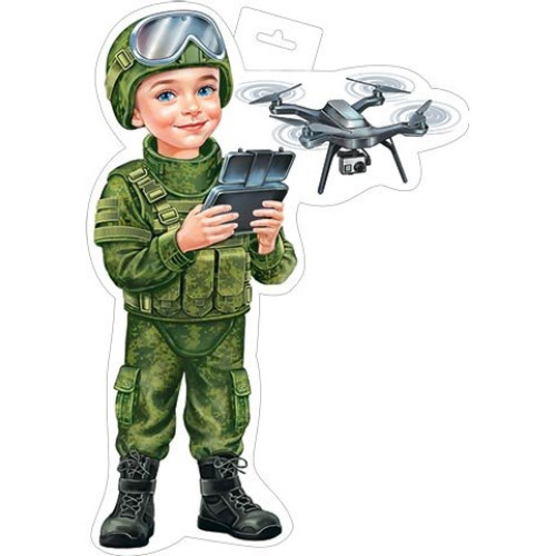 Стильно и недорого. Уникальный дизайн. Плакат фигурный (мальчик с дроном) Тематика: 23 февраля