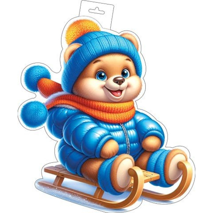 Стильно и недорого. Уникальный дизайн. Плакат фигурный (мишка на санках) Тематика: Новый Год