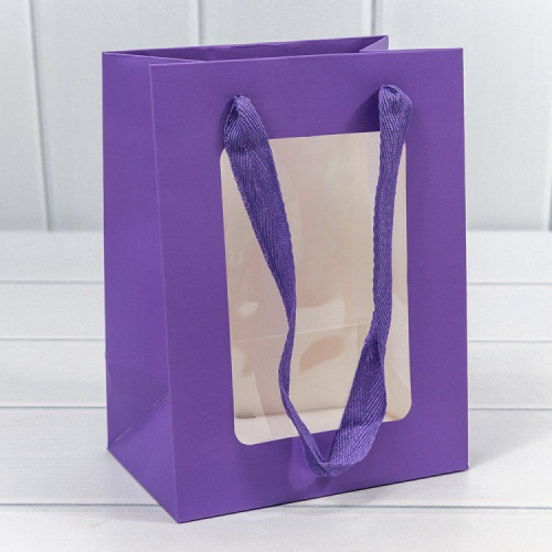 Пакет подарочный с окошком Сиреневый 15*20*10 210г 1/20 1/480