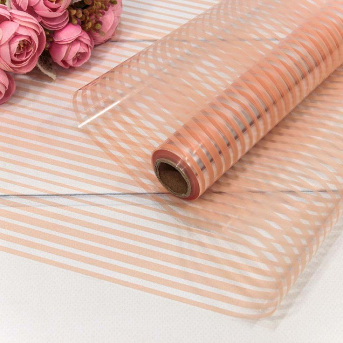 Стильно и недорого. Уникальный дизайн. Плёнка 0,58*10м глянцевая в полоску 50мкм Персиковый 1/30* Тематика: Общепоздравительные