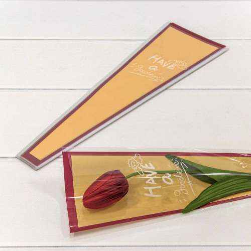Стильно и недорого. Уникальный дизайн. Пакет "Конус для цветов" 12,5*4*40 (30 шт.) Красная рамка 1/200 Тематика: Общепоздравительные