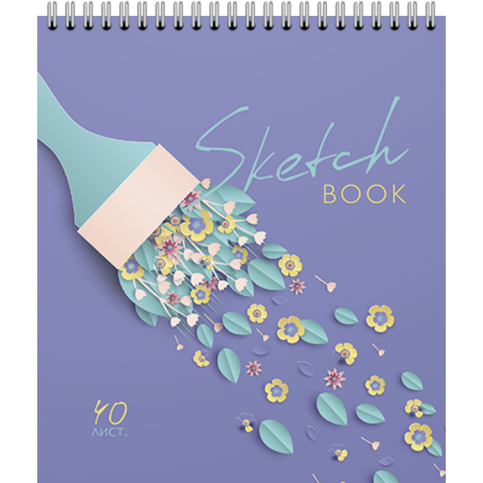 • 096813 Скетчбуки 40 А5 Гребень S Цветочки(бумага офсет 120 г/кв.м)  стандарт 4+1+УФ Твин (40, 2)