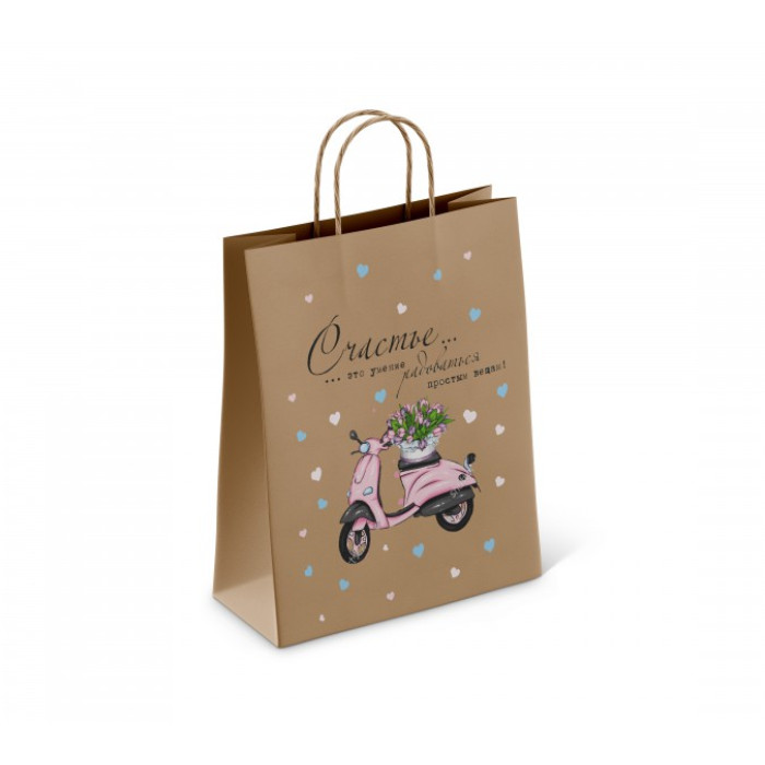 • Пакет бумажный 80 г/м2 крученые ручки 450*350*150 Счастье есть (250, 0)