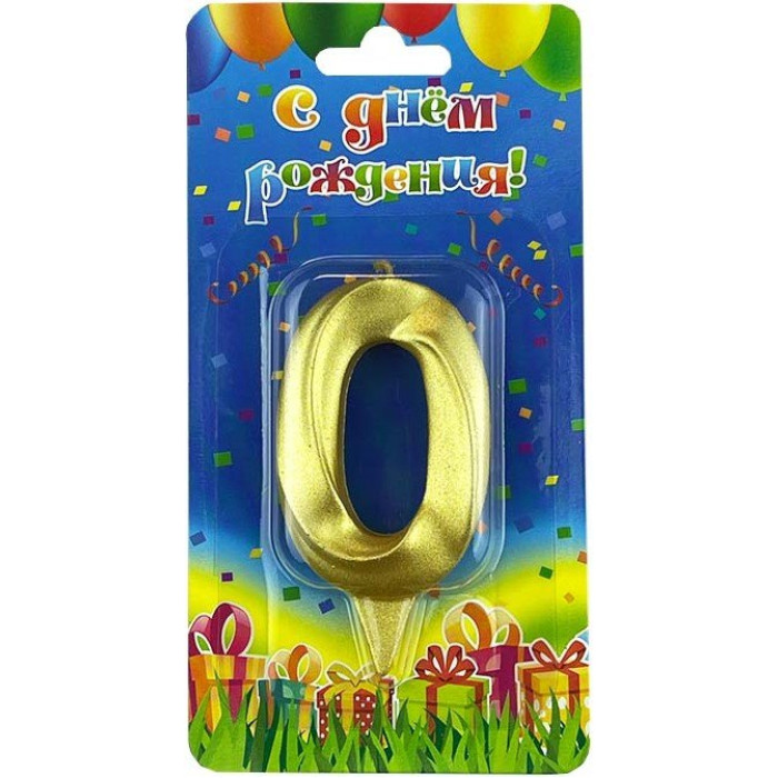 Стильно и недорого. Уникальный дизайн. Свеча Цифра, 0 Грани, Золото, 7 см, 1 шт. Тематика: Общепоздравительные