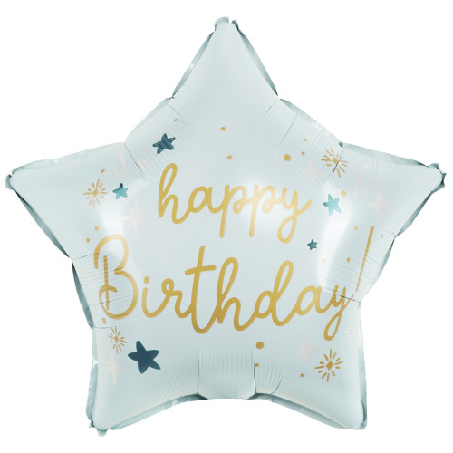 Стильно и недорого. Уникальный дизайн. Шар (18''/46 см) Звезда, Happy Birthday (звездочки), Светло-голубой, Сатин, 1 шт. в уп. (цв.этик.) Тематика: День Рождения