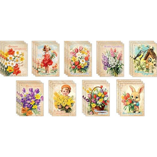 Стильно и недорого. Уникальный дизайн. Набор мини-открыток (27 шт.) Тематика: 8 Марта