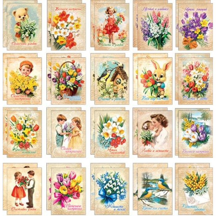 Стильно и недорого. Уникальный дизайн. Набор мини-открыток (40 шт.) Тематика: 8 Марта