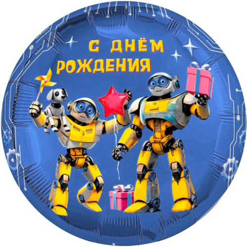 • Шар (18''/46 см) Круг, С Днем Рождения (роботы), 1 шт.
