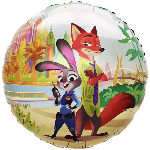 Стильно и недорого. Уникальный дизайн. Шар (18''/46 см) Круг, Мистер Лис и Зайка Полицейский, Командная работа, 1 шт. Тематика: Общепоздравительные