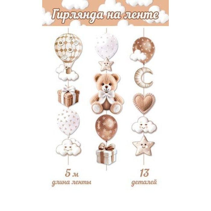 Стильно и недорого. Уникальный дизайн. Детская  гирлянда на ленте (длина ленты 5 м) Тематика: Общепоздравительные
