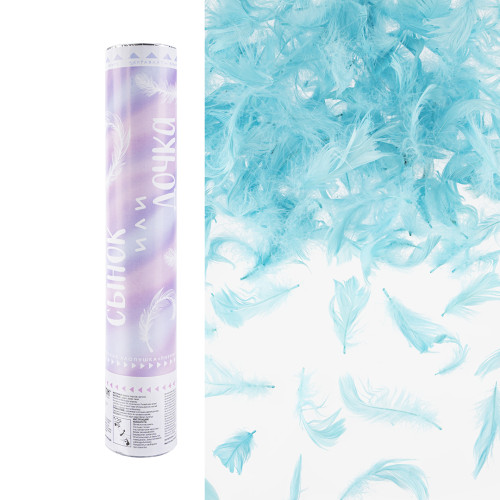 Пневмохлопушка (12/30 см), Гендер Пати, Сынок или Дочка?, Перья, Голубой, 1 шт.