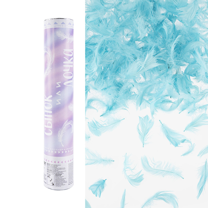 • Пневмохлопушка (12/30 см), Гендер Пати, Сынок или Дочка?, Перья, Голубой, 1 шт.