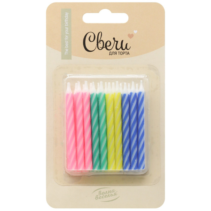 Стильно и недорого. Уникальный дизайн. Свечи Яркие полоски, Ассорти, 0,5*6 см, 20 шт. Тематика: Общепоздравительные