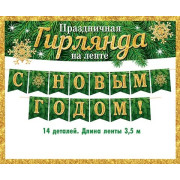 • С новым годом! (Длина 3,5 м) (На ленте) (Ф2, золотые блестки)