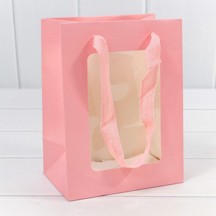 Пакет подарочный с окошком Розовый 15*20*10 210г 1/10 1/480